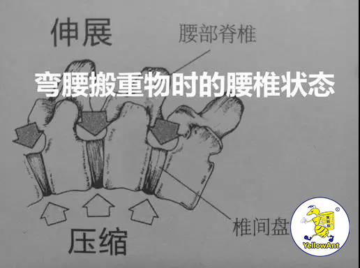 2、“弓背弯腰”,你的腰部不得不作为发力的主力军来参与发力,这时压力会不均匀的分散在椎间盘和腰部的肌肉中,长此以往会造成纤维环内髓核的移动,压迫脊神经造成腰痛。